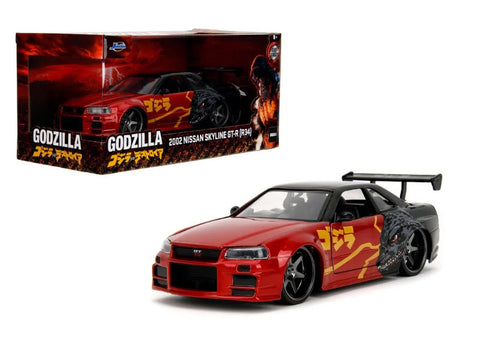 Jada - 2002 Nissan Skyline GT-R R34 RHD Red Metallic/Black – Godzilla vs. Destoroyah (1995) Hollywood Rides 1/24 - Red Metallic and Black