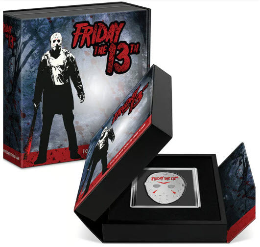 We are thrilled – and terrified – to announce a new 1oz pure silver coin for the iconic Crystal Lake mass murderer, Jason Voorhees, from the horror film franchise, Friday the 13th.