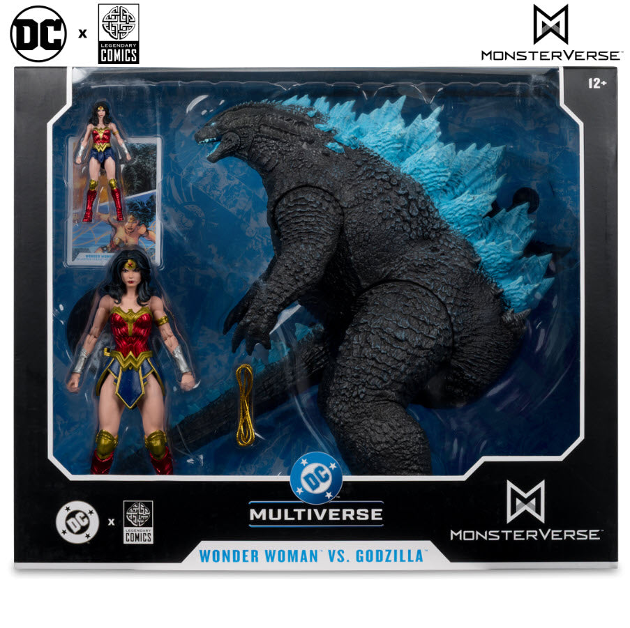 - Includes 7″ Wonder Woman action figure, 3″ Wonder Woman mini-figure, and 12″ Godzilla figure (with Atomic Blast paint deco)